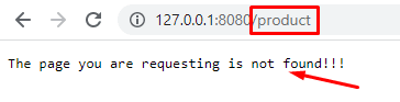 Let’s check the output with a different route that is not defined in the program. For example, “/product”.