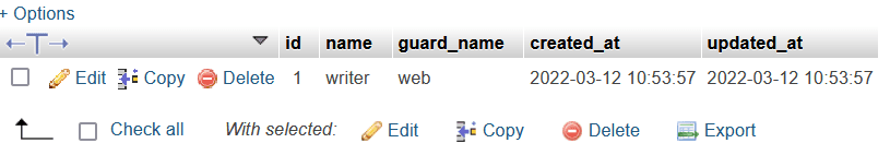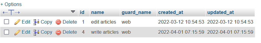 As you can see, in our roles table the writer role is created. In the same way, we can also create permission. Let’s do that-