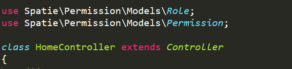 Now, that everything is set, let’s create our first role. But before doing that, inside of our controller, we have to assign the roles and permissions. Like this-