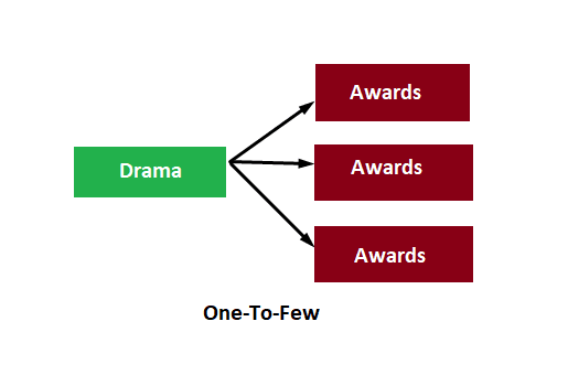 These differences are being created on the basis of the relative amount of many. Let’s see an example of a one-to-few relationship. To demonstrate it, we may consider it as a drama and a drama may have won some awards but not many.