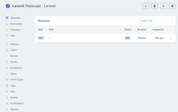 As you can see, in the Telescope the route name automatically appears and it’s showing us the status 200 which is a successful HTTP request-response that means our code was executed successfully.