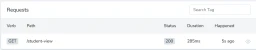 In the exception menu of Telescope, we can find out the error and details about it. We passed the $studentData variable as a student. So, it’s showing us the undefined variable error. Now if we solve the error and get back to the requests menu-