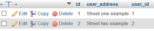 In this user table, we have some fields like id, name, email, and password and in the address table, we’ve id, user address, and the user_id field.