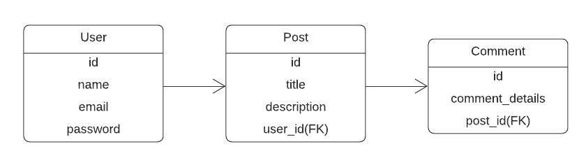 Now consider a user can post on the site. So, a user can have many posts. The database demo diagram is given below-