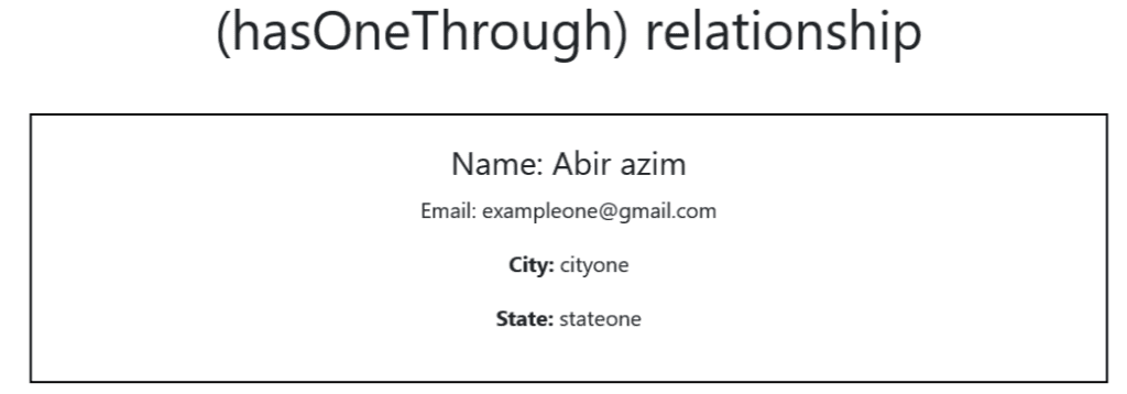 Here, the relation between Student and Profile model is hasOne relation. On the other hand, the Student model relates with the Profile_details model with hasOneThrough relationship.